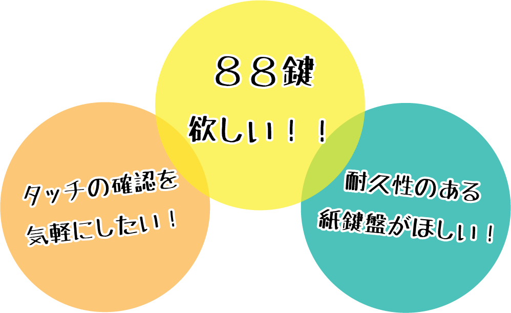 もっと高性能なロール鍵盤や超薄型の電子ピアノも最近多く見かけるようになりましたが、